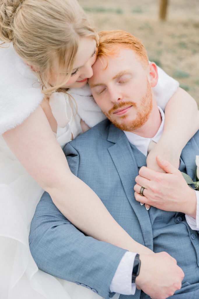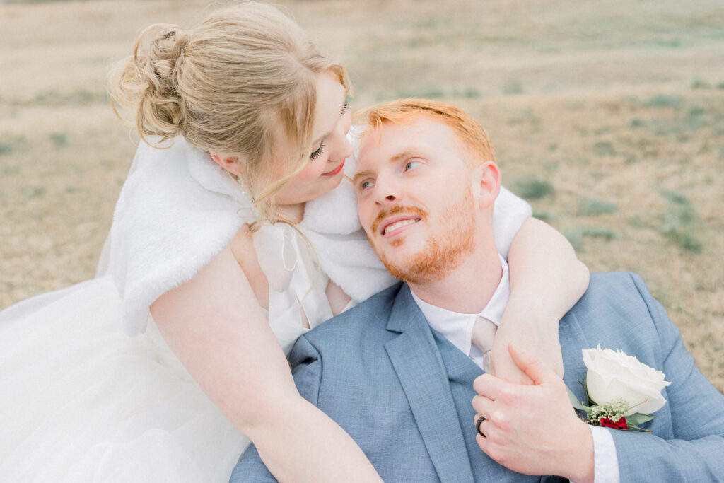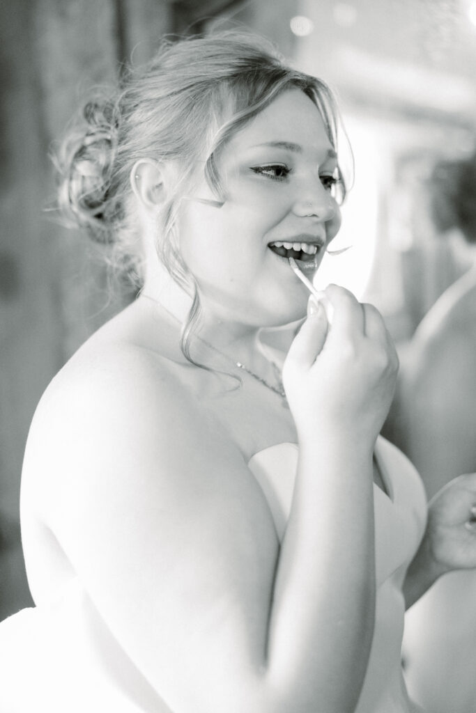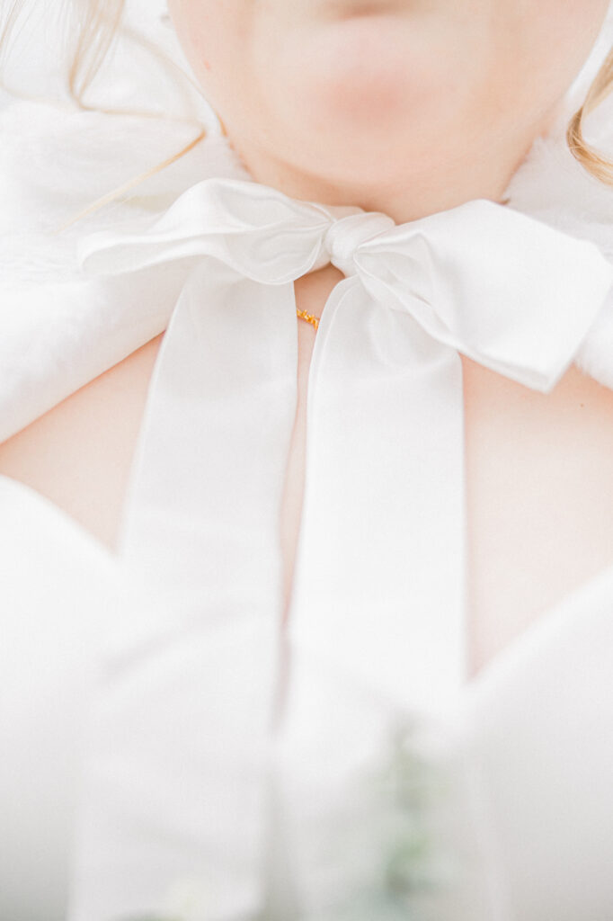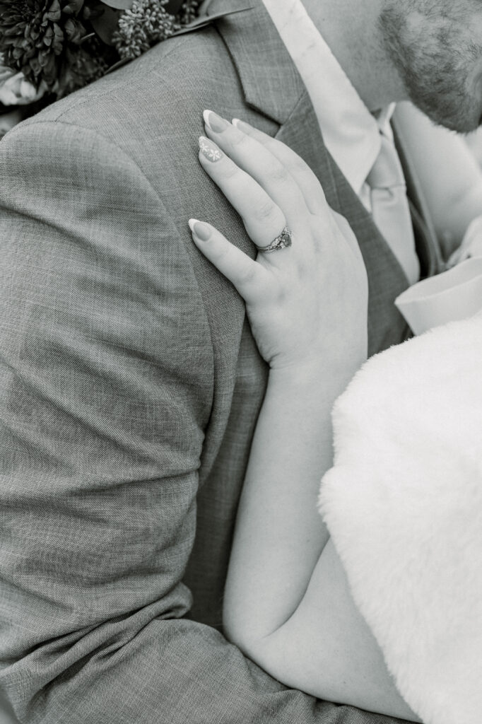 Emily paid incredible attention to the details. Her wedding day look was absolutely stunning. She truly looked like the perfect winter bride. Her veil featured delicate appliqué embroidery with both her and Chase’s names stitched into the design, making it a meaningful piece she’ll always have from their day.