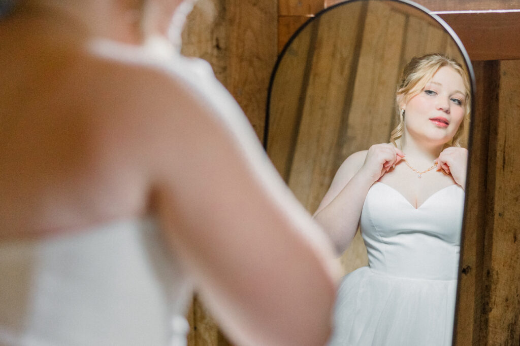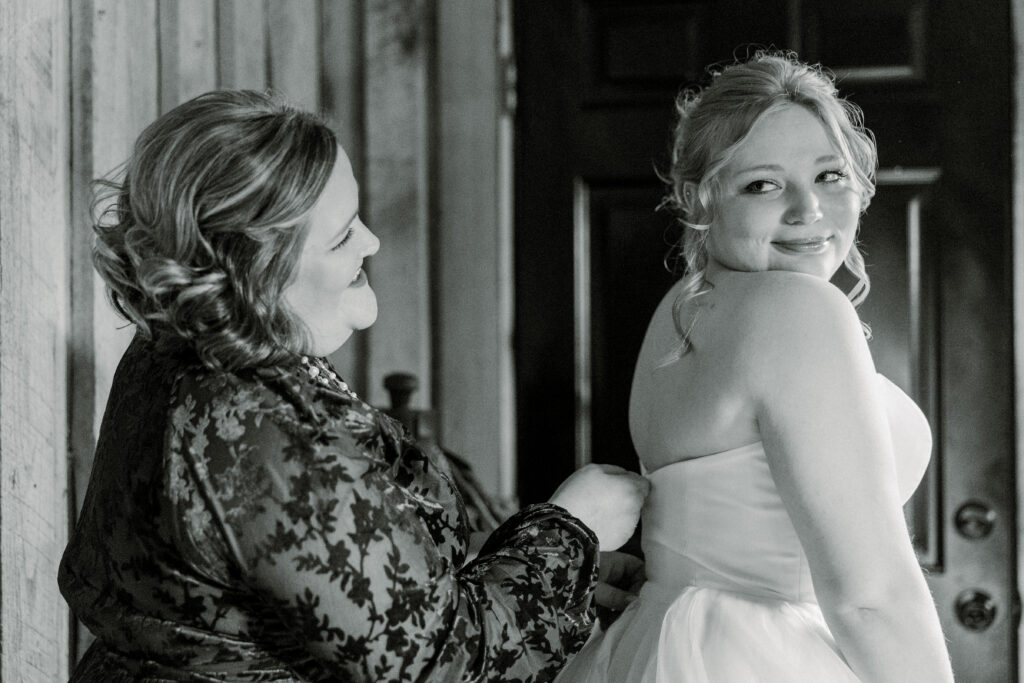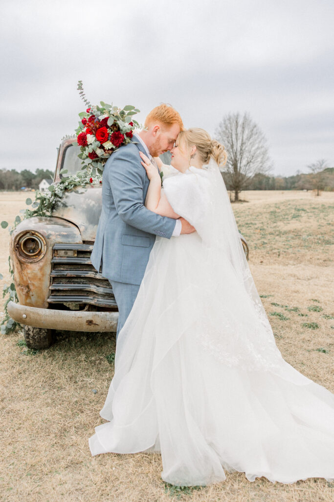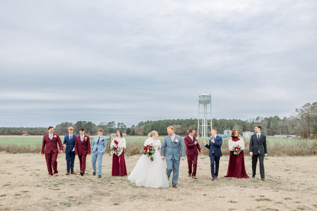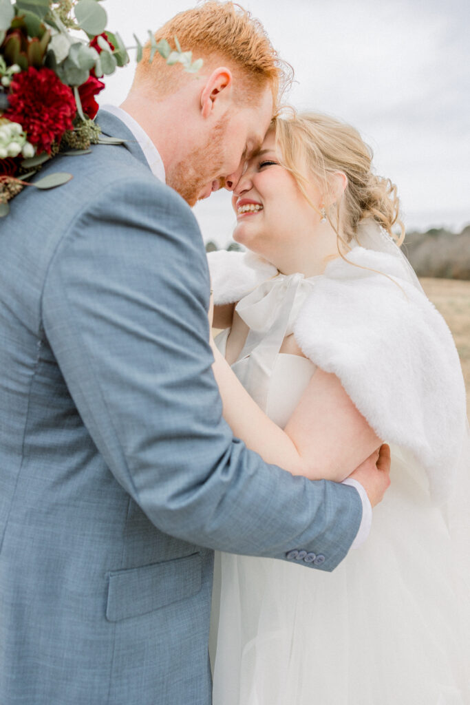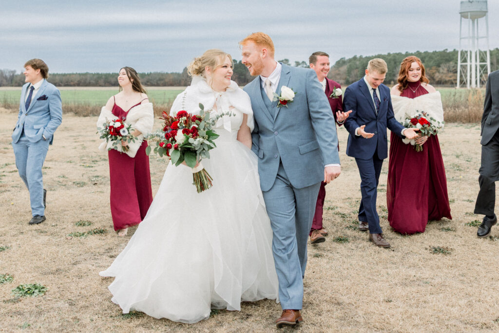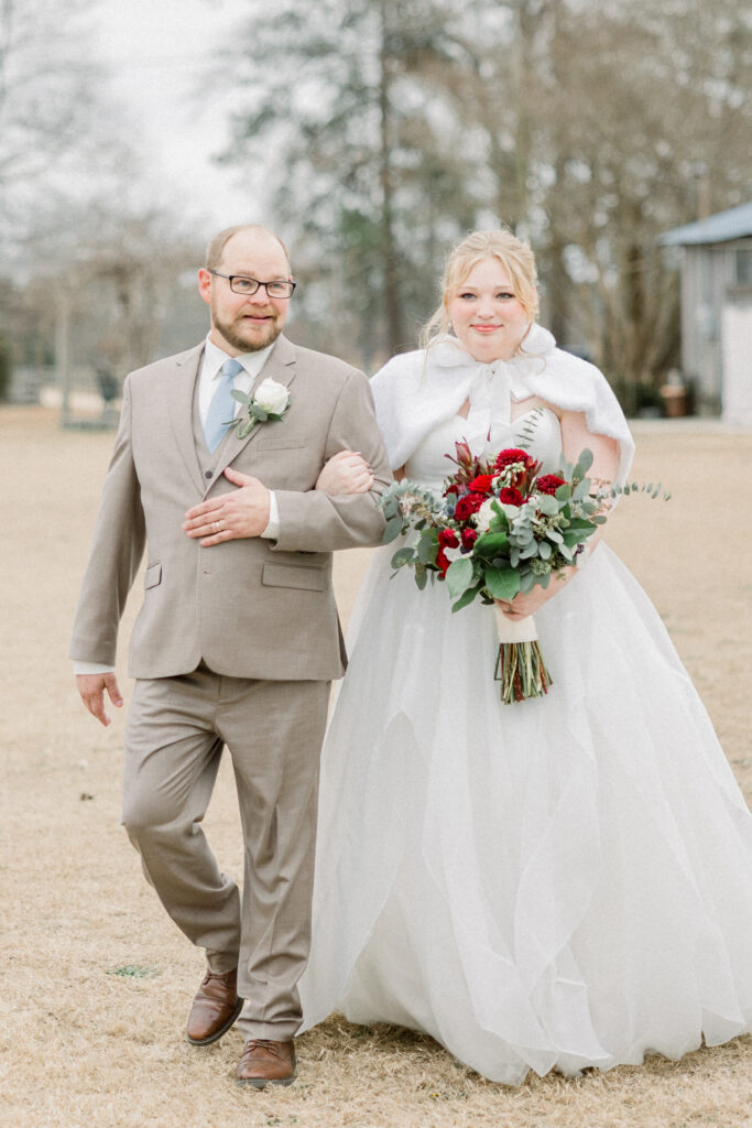 Just a short drive from Fayetteville, this charming barn venue sits surrounded by beautiful open fields, creating a peaceful setting for a wedding day to unfold naturally. It was the perfect backdrop for Emily and Chase’s classic winter celebration.